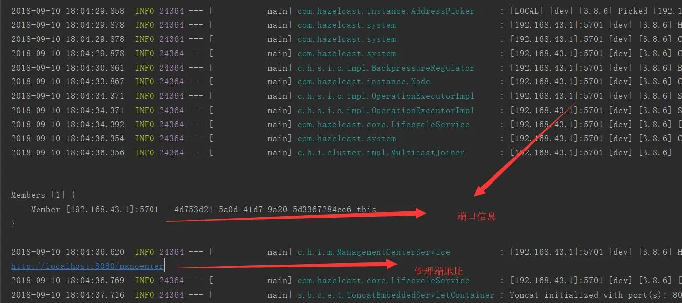 2018-09-11 22:15:24.391 INFO 21336 --- [ main] com.imooc.seller.service.ProductCache : rpc查询 全部产品,结果:[Product{id='001', name='rpc', status='IN_SELL', thresholdAmount=1, stepAmount=0, lockTerm=0, rewardRate=3, memo='null', createAt=null, updateAt=null, createUser='null', updateUser='null'}]进入hazelcast管理端,有全部数据的缓存数据的话 , 就成功的完成了缓存全部数据的功能。