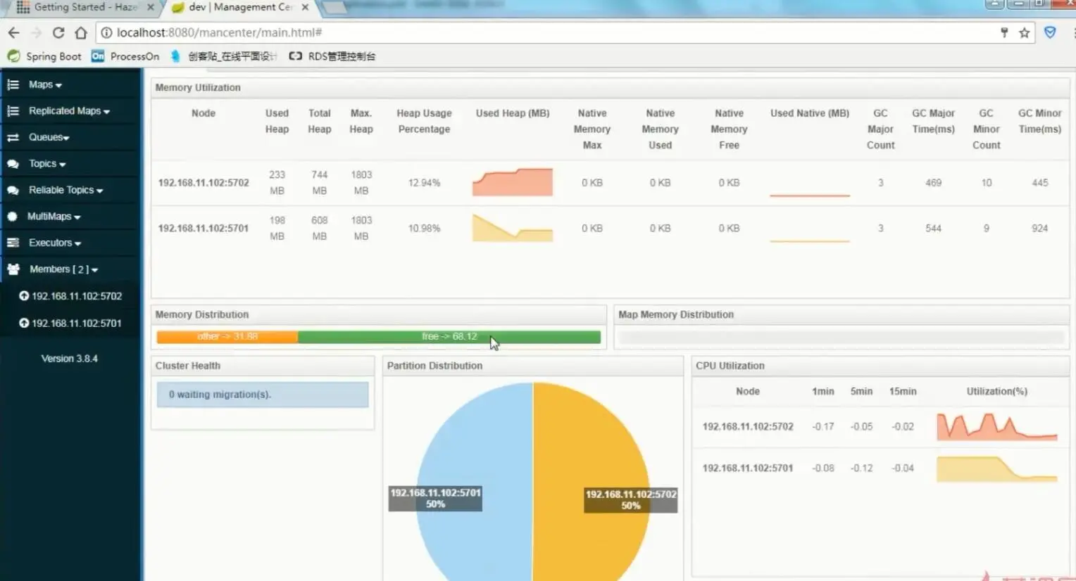 至此 SpringBoot整合Hazelcats做为缓存就全部完成。