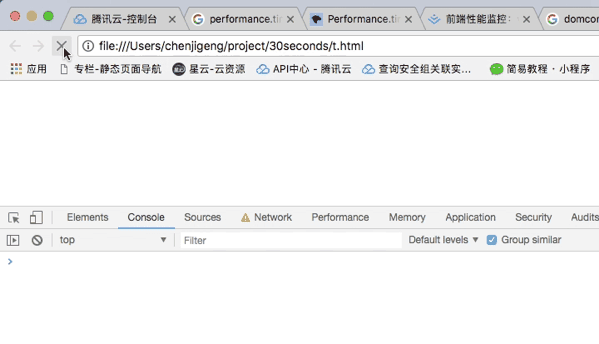 由上图我们可以看到,当css还没加载完成的时候,h1并没有显示,但是此时控制台输出如下