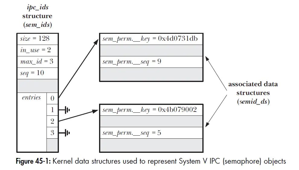 - 如果没有找到匹配结构指定了IPC_CREAT,会分配一个对应的关联数据结构(ex:semid_ids)并初始化