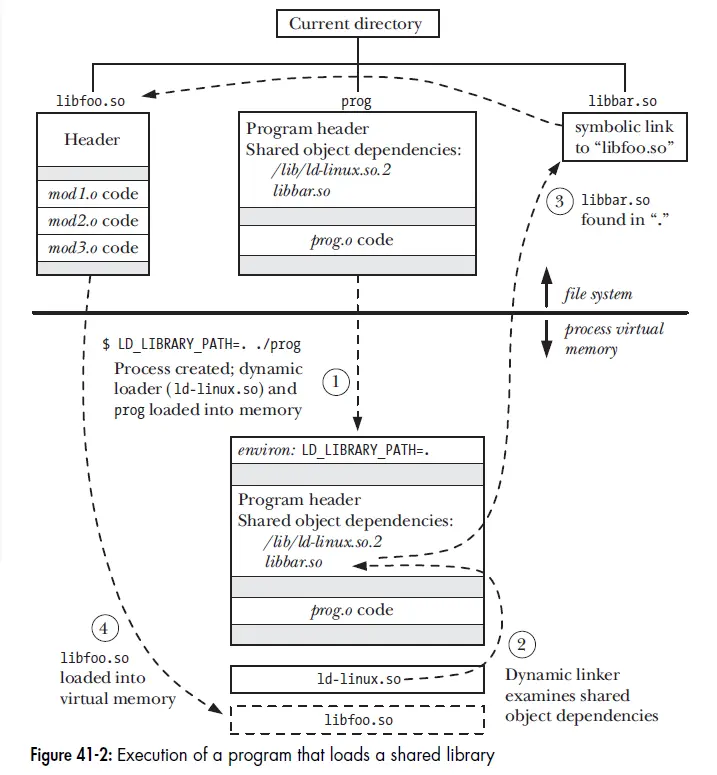 LD_LIBARY_PATHgcc -g -Wall -o prog prog.c libfoo.so- 动态链接也会有静态链接的阶段,运行时,共享库程序会经历额外动态链接阶段
