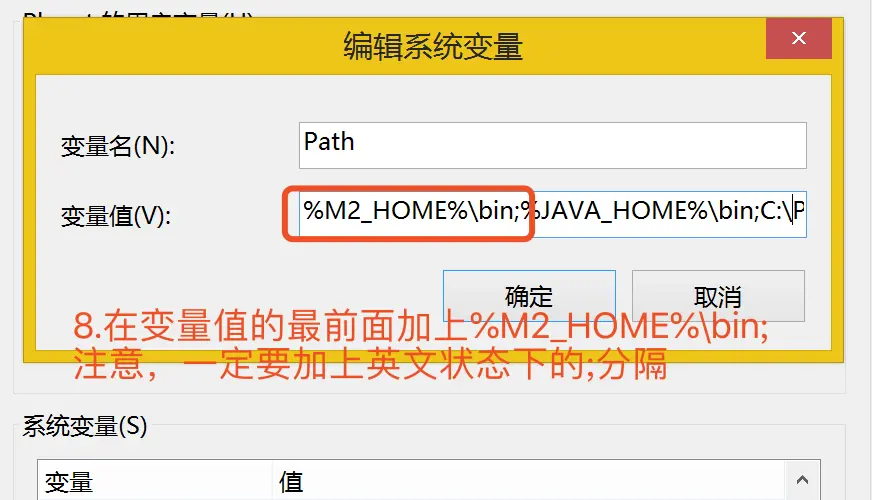 最后设置环境Maven的环境变量,主要配置M2_HOME和PATH两项,步骤如下图: