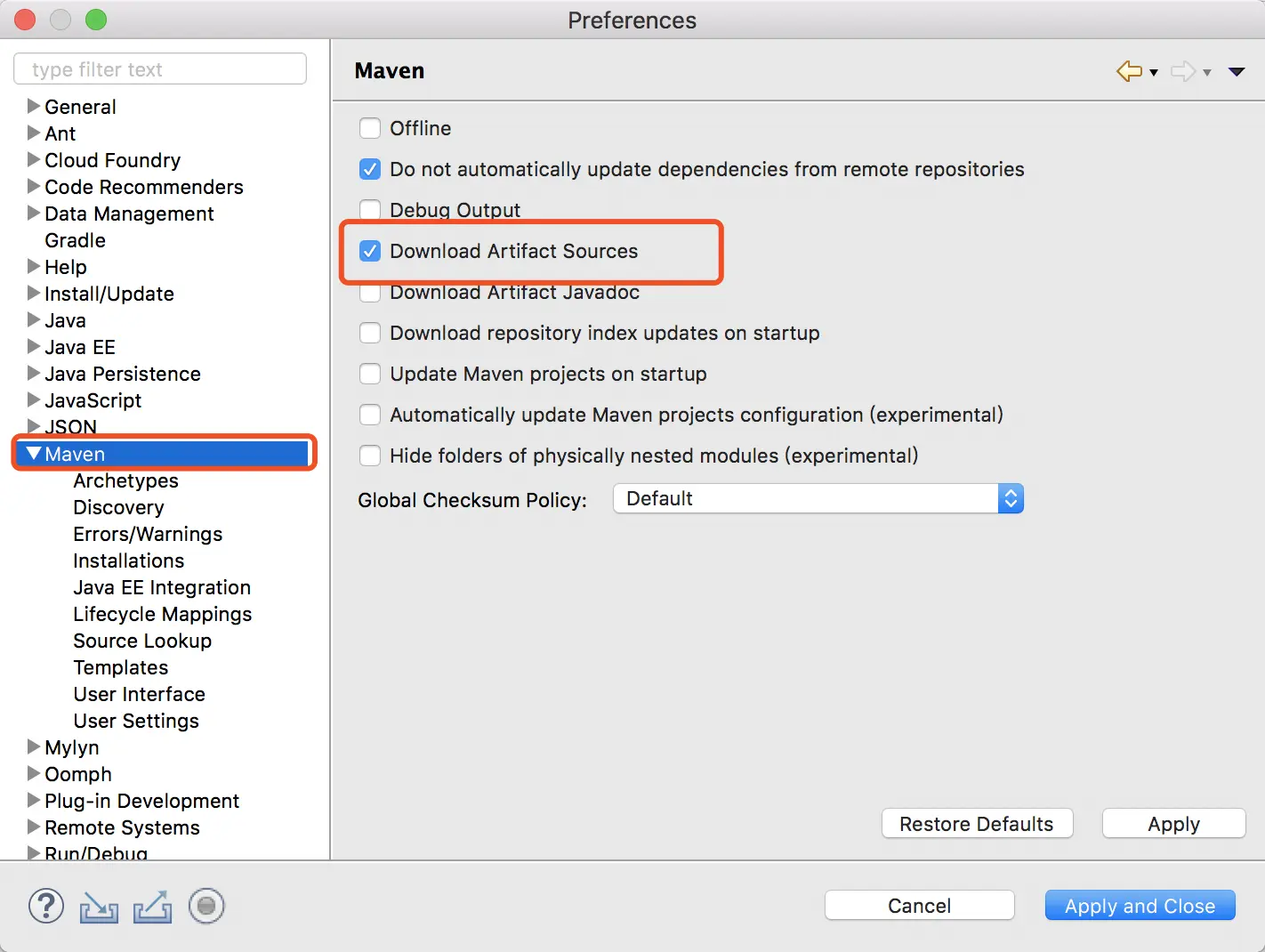 - 在左侧边栏有个Maven,点击Maven,勾选上Download Artifact Sources,意思是引入依赖后自动下载关联源码,不需要可以不勾选;