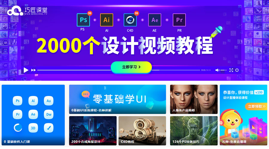 原创高清设计视频教程网站,全站2000+教程,覆盖PS+AI+C4D+AE+AU+AE+3DMAX等....