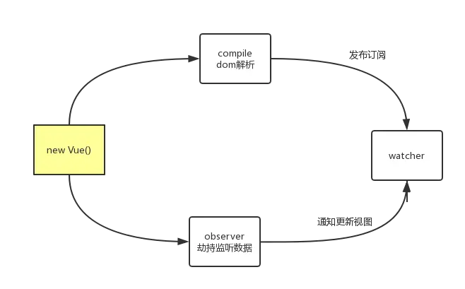 Vue constructor构造函数主要是数据的初始化proxyData数据代理observer劫持监听所有数据compile解析domcompileText解析dom里处理纯双花括号的操作Watcher更新视图操作
