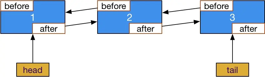 LinkedHashMapEntry用来存储数据,定义了before,after显示上一个元素和下一个元素。
