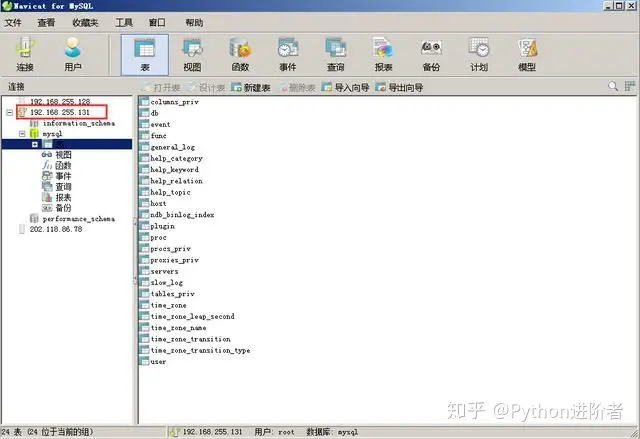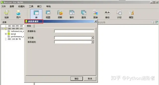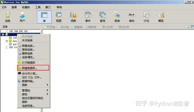 用过远程连接数据库工具的小伙伴都知道,在Navicat中新建数据库和表并不太难,具体的教程如下所示。在这里依然以IP地址为192.168.255.131的主机数据库为例。