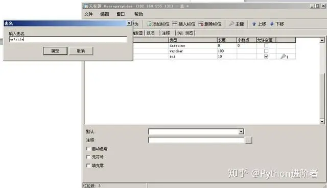 10、保存之后,可以看到表名由之前的“无标题”变成了现在的article,并且可以看到所设置的字段。
