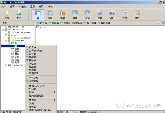 14、当然了,右键点击article,可以看到关于表格的操作还有许多,在此就不赘述了。