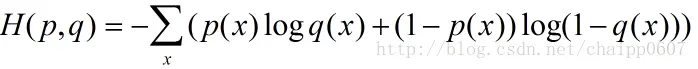 交叉熵刻画的是实际输出(概率)与期望输出(概率)的距离,也就是交叉熵的值越小,两个概率分布就越接近。假设概率分布p为期望输出,概率分布q为实际输出,H(p,q)为交叉熵,则: