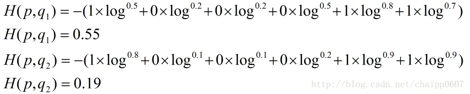 很显然,q2与p更为接近,它的交叉熵也更小。