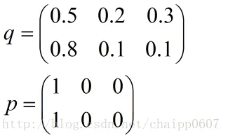 假设N=3,期望输出为p=(1,0,0),实际输出q1=(0.5,0.2,0.3),q2=(0.8,0.1,0.1),那么: