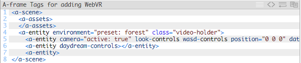 请查看我向Verto Communicator中添加的A-Frame代码,一共只有8行。
