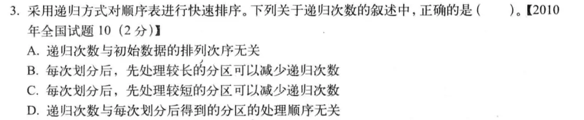 每次划分后,对长短分区的处理顺序,不会影响到递归树的高度,也就不会影响到递归次数,对长短分区的处理顺序会影响到堆栈的使用内存,先处理短的分区,可以减小堆栈的深度