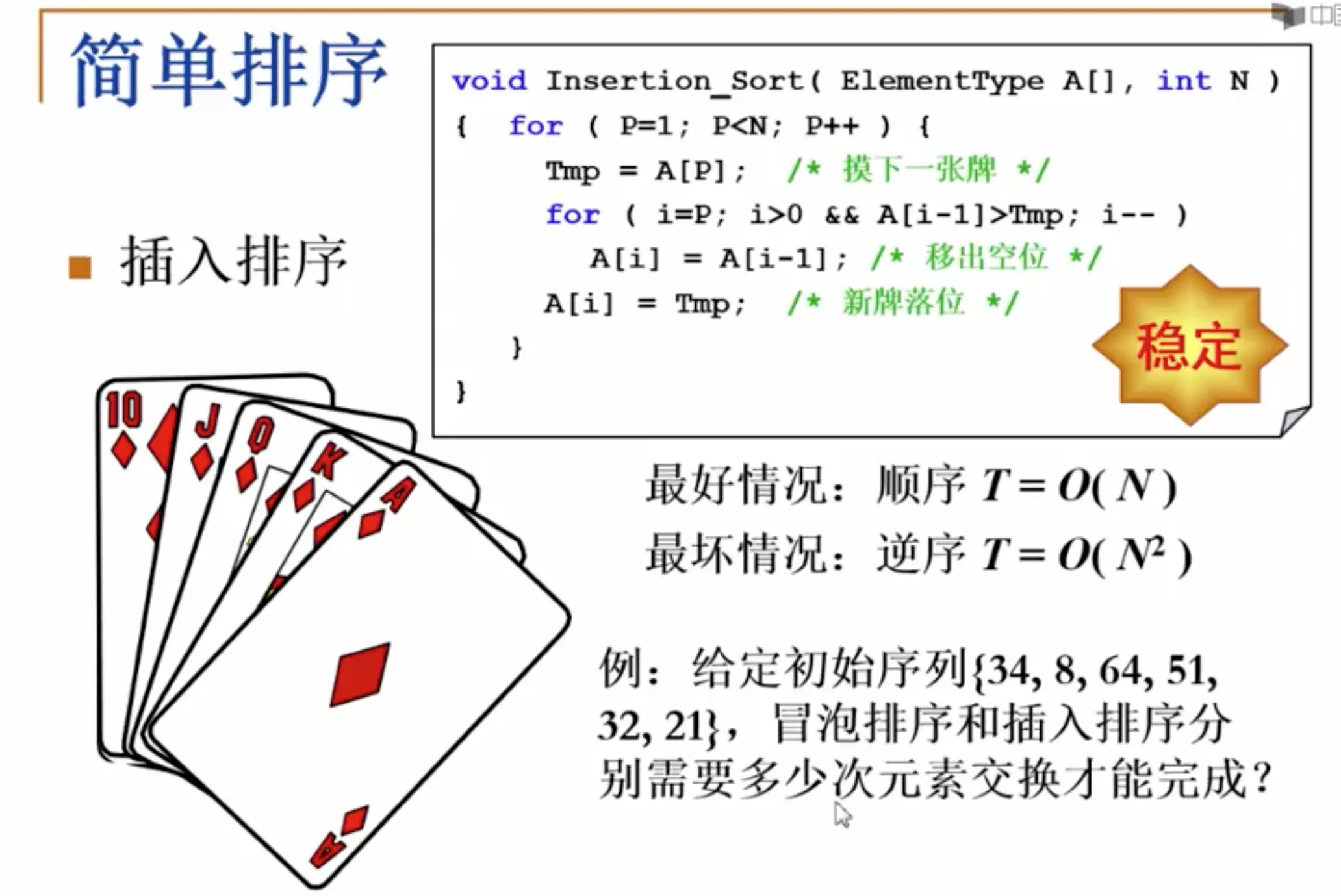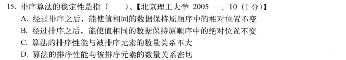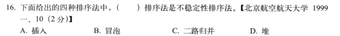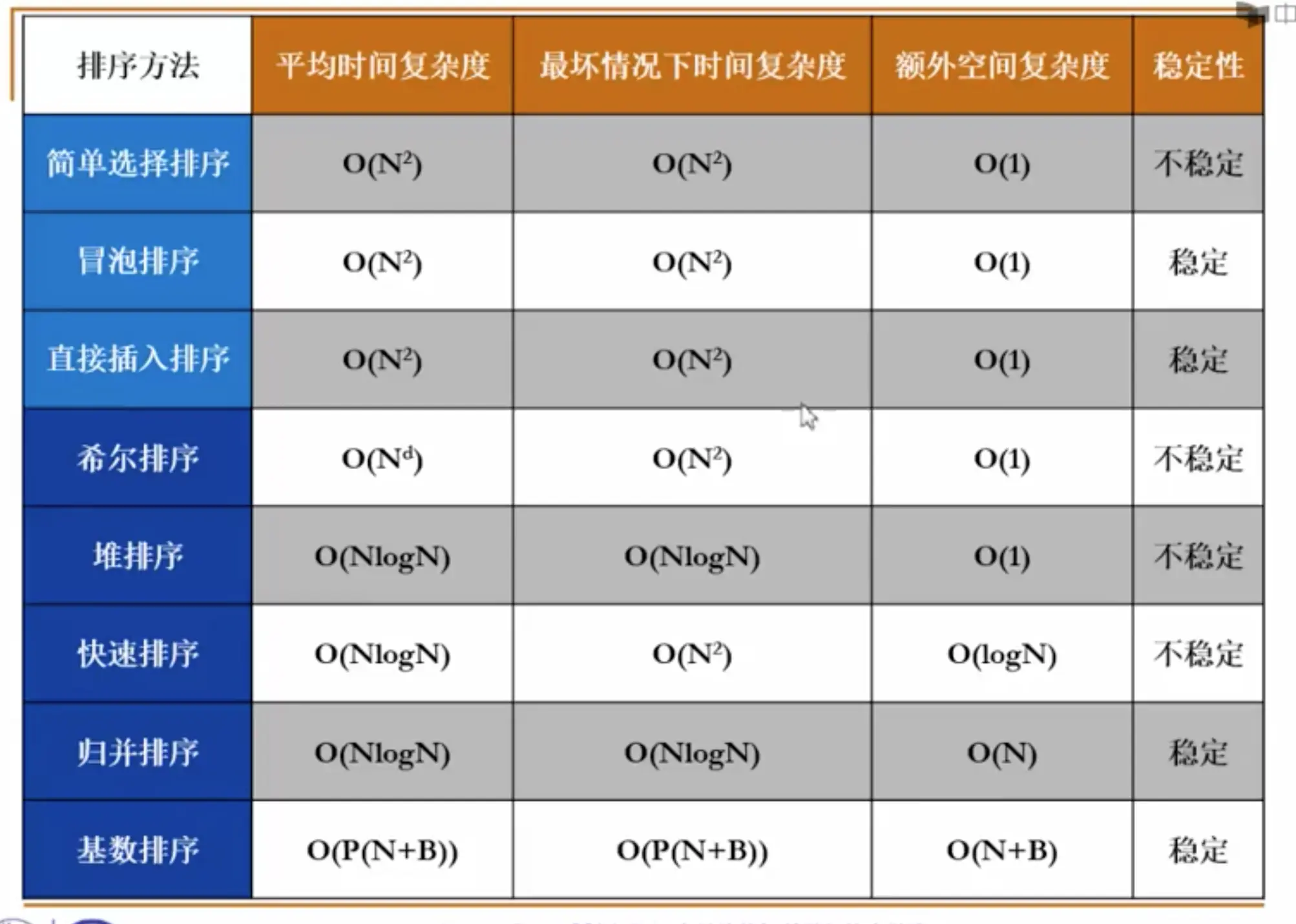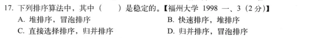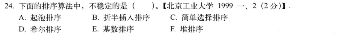 冒泡排序,插入排序(折半插入),都是稳定的,他们的改进型快速排序和希尔排序,都是不稳定的