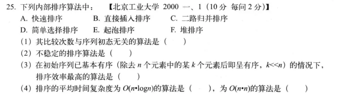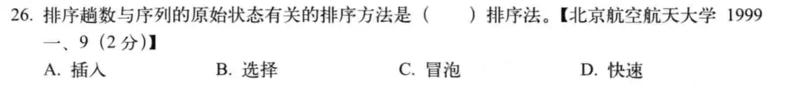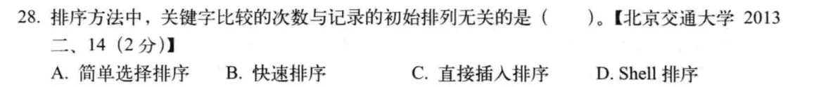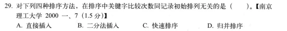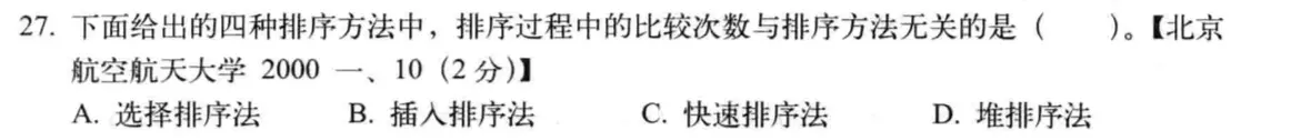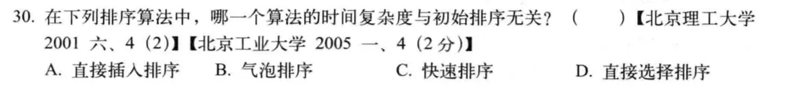 由于时间复杂度等同于比较次数,所以本题等同于,哪一个算法的比较次数与初始排列是否有序无关
