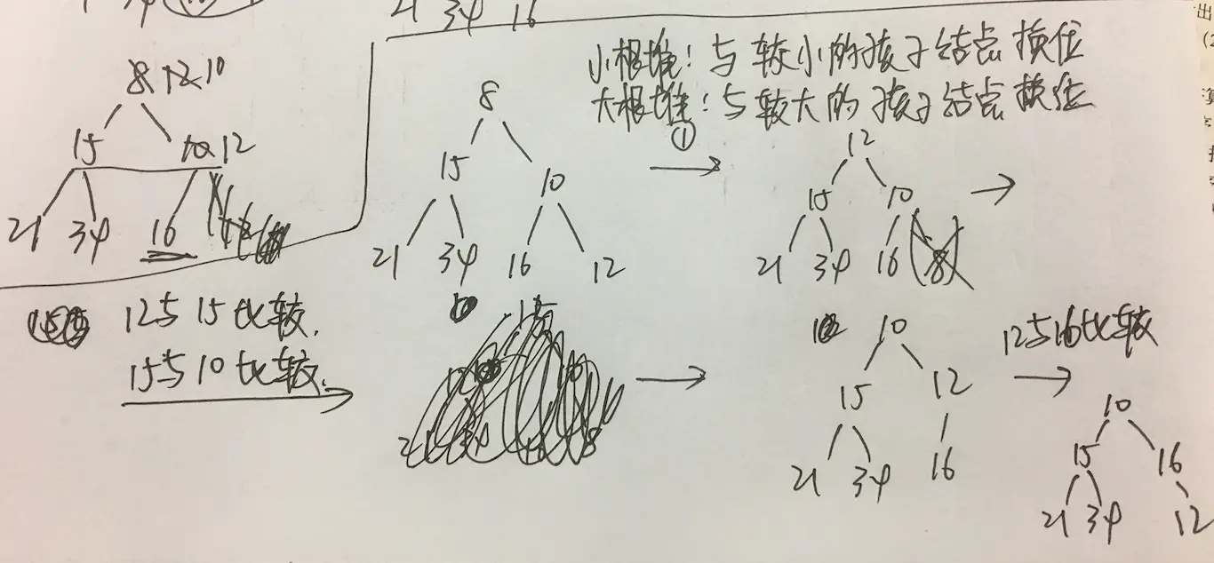 堆在插入节点之后,需要进行调整,只需要与父节点进行比较即可,如果大小异常,就进行交换,如果如果经过入干次调整之后,发现正常了,还需要进行一次大小比较,发现正常,然后就不进行交换了