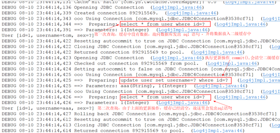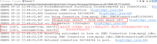 //第二次查询,由于是同一个sqlSession.commit(),会清空缓存信息
