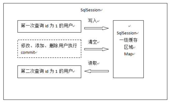 2、如果中间sqlSession去执行commit操作(执行插入、更新、删除),则会清空SqlSession中的一级缓存,这样做的目的为了让缓存中存储的是最新的信息,避免脏读。
