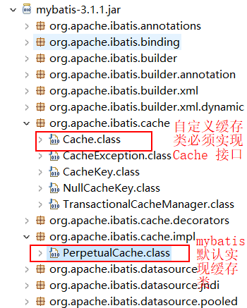 我们可以看到 mapper.xml 文件中就这么一个空标签<cache/>,其实这里可以配置<cache type="org.apache.ibatis.cache.impl.PerpetualCache"/>,PerpetualCache这个类是mybatis默认实现缓存功能的类。我们不写type就使用mybatis默认的缓存,也可以去实现 Cache 接口来自定义缓存。
