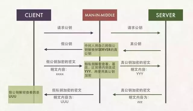 但是方案1有个问题:如果服务器端发送公钥给客户端时,被中间人调包了,怎么办?