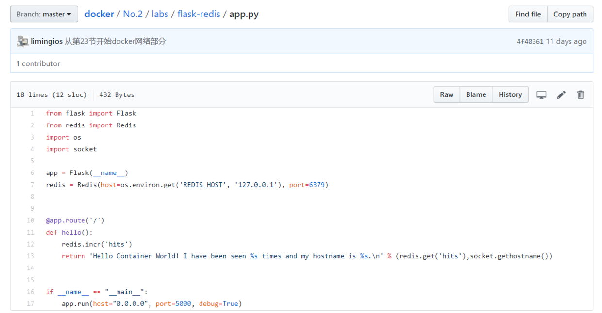 通过前几次学习,对于docker的网络特别是单机,今天这次主要一起来看比较复杂的,会用到前面学到的docker的网络知识。今天创建一个application。这篇的源码在:github.com/limingios/d… 中的docke/No.2/labs/flask-redis/
