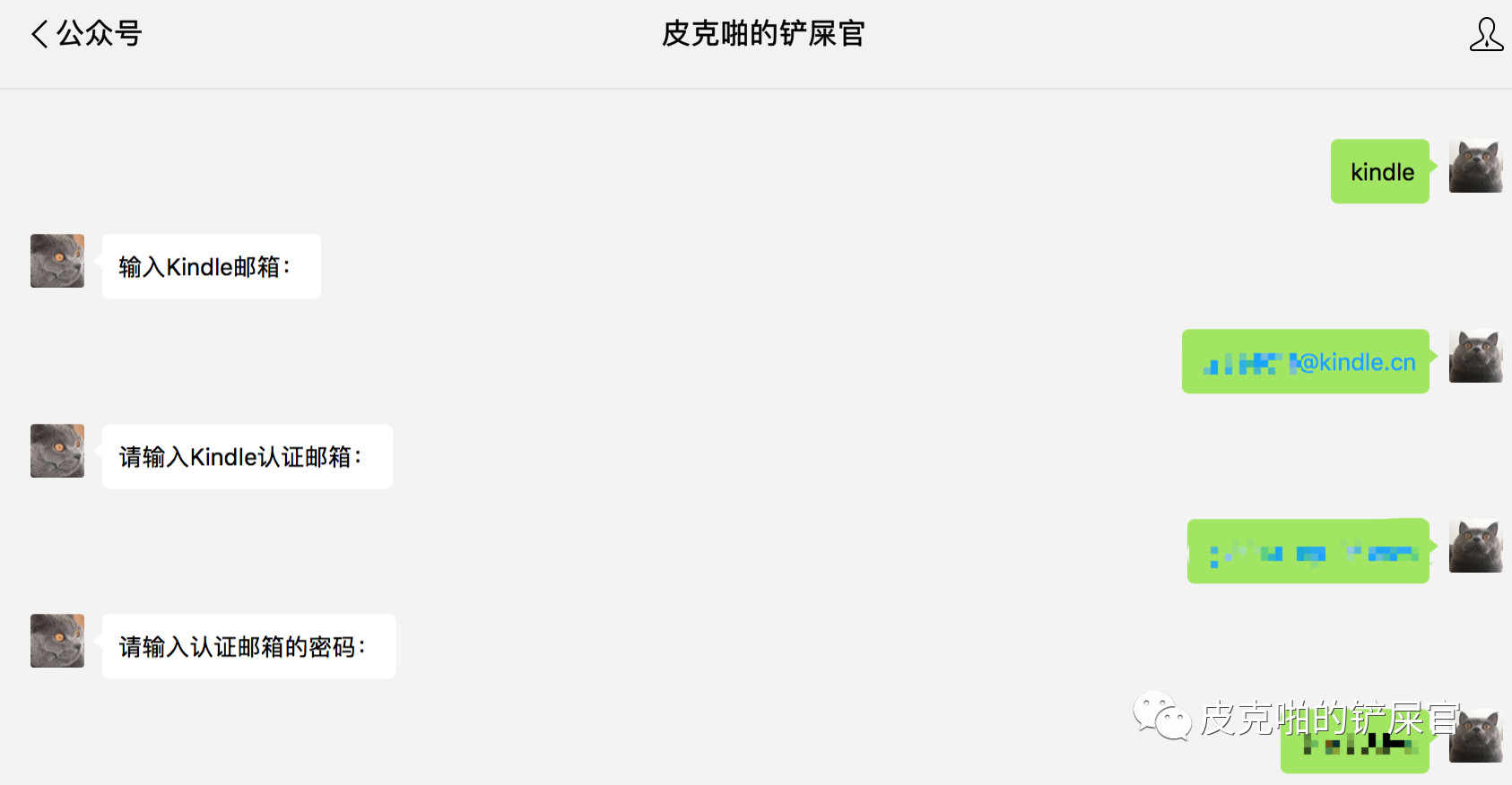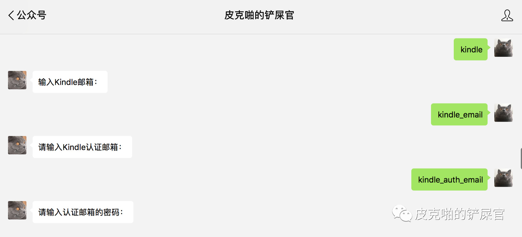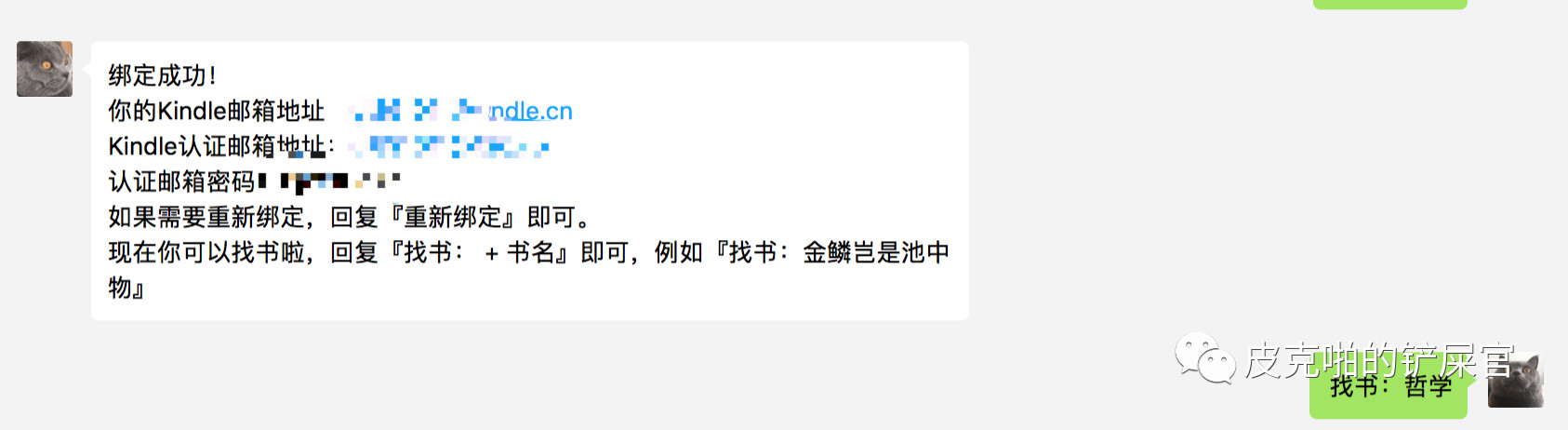 - 首先通过微信公众号来绑定用户的推送Kindle信息:Kindle的账户邮箱,Kindle已经认可的发件人邮箱,Kindle认可的发件人邮箱的STMP密码。