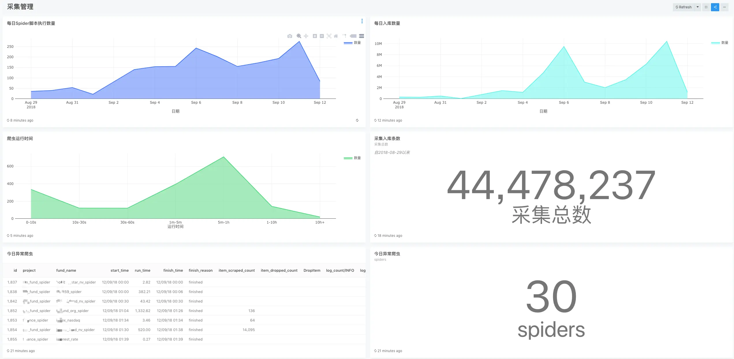 根据scrapy log日志表,设计出一张bashboard监控面板: