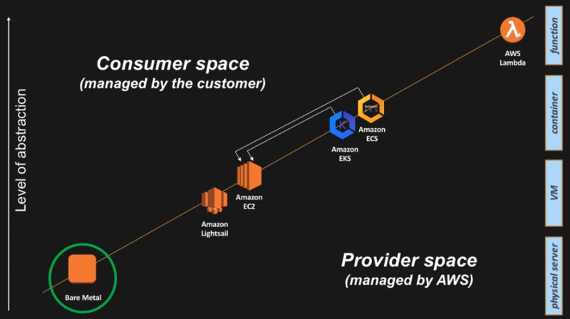 AWS 不同级别的计算抽象是怎样的?