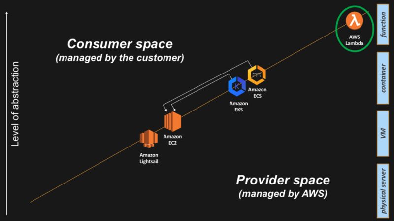 在 2014 的 re:Invent 大会上,AWS 引入了另一个抽象层:AWS Lambda。Lambda 是一个执行环境,允许 AWS 客户运行单个函数。因此,无需管理和运行整个 OS 实例来运行代码,也无需在用户构建的容器中跟踪所有的软件依赖项来运行代码,Lambda 允许上传代码,大规模的运行则交给 AWS。