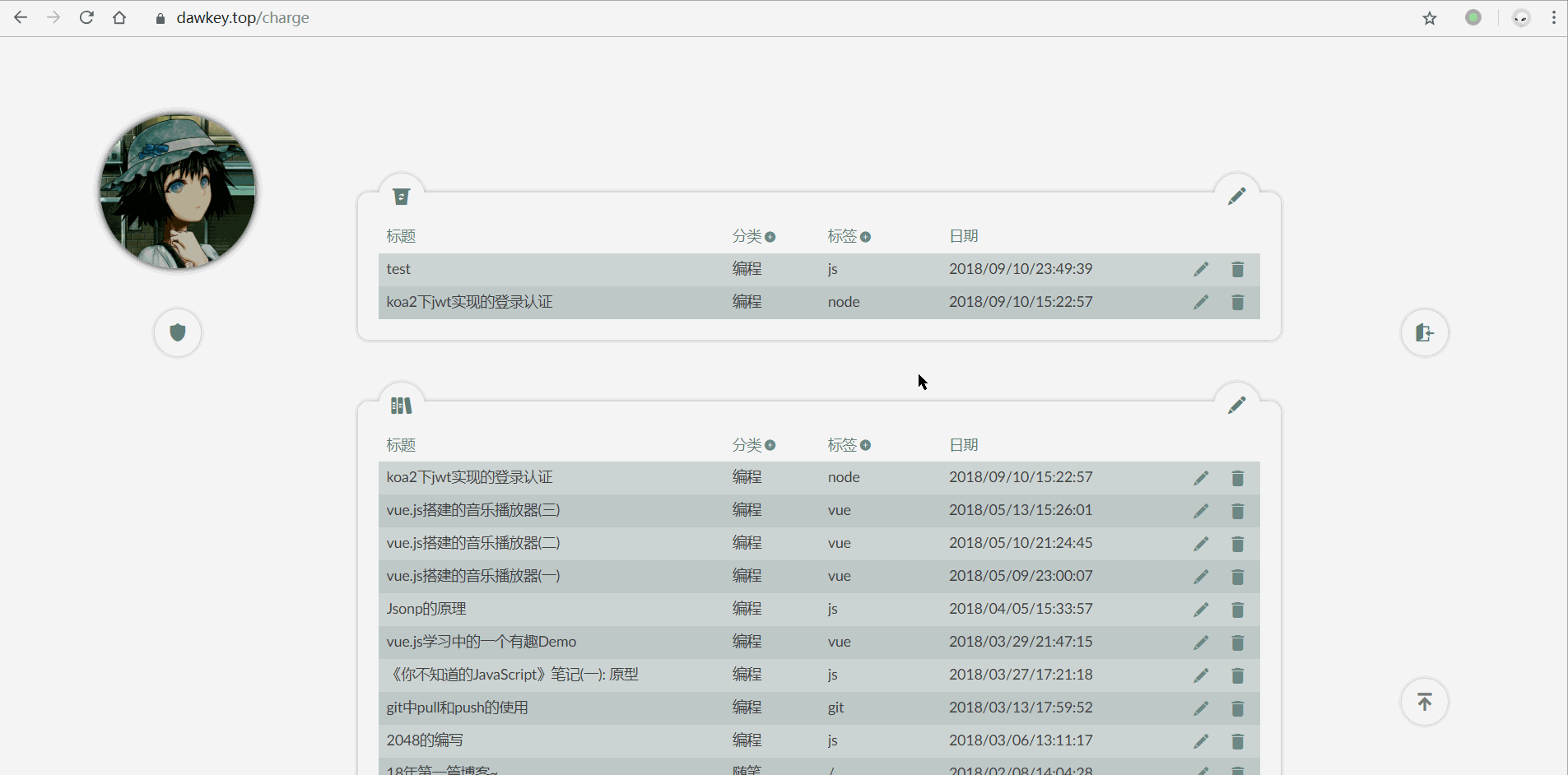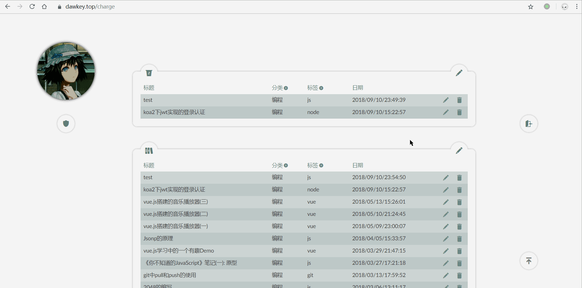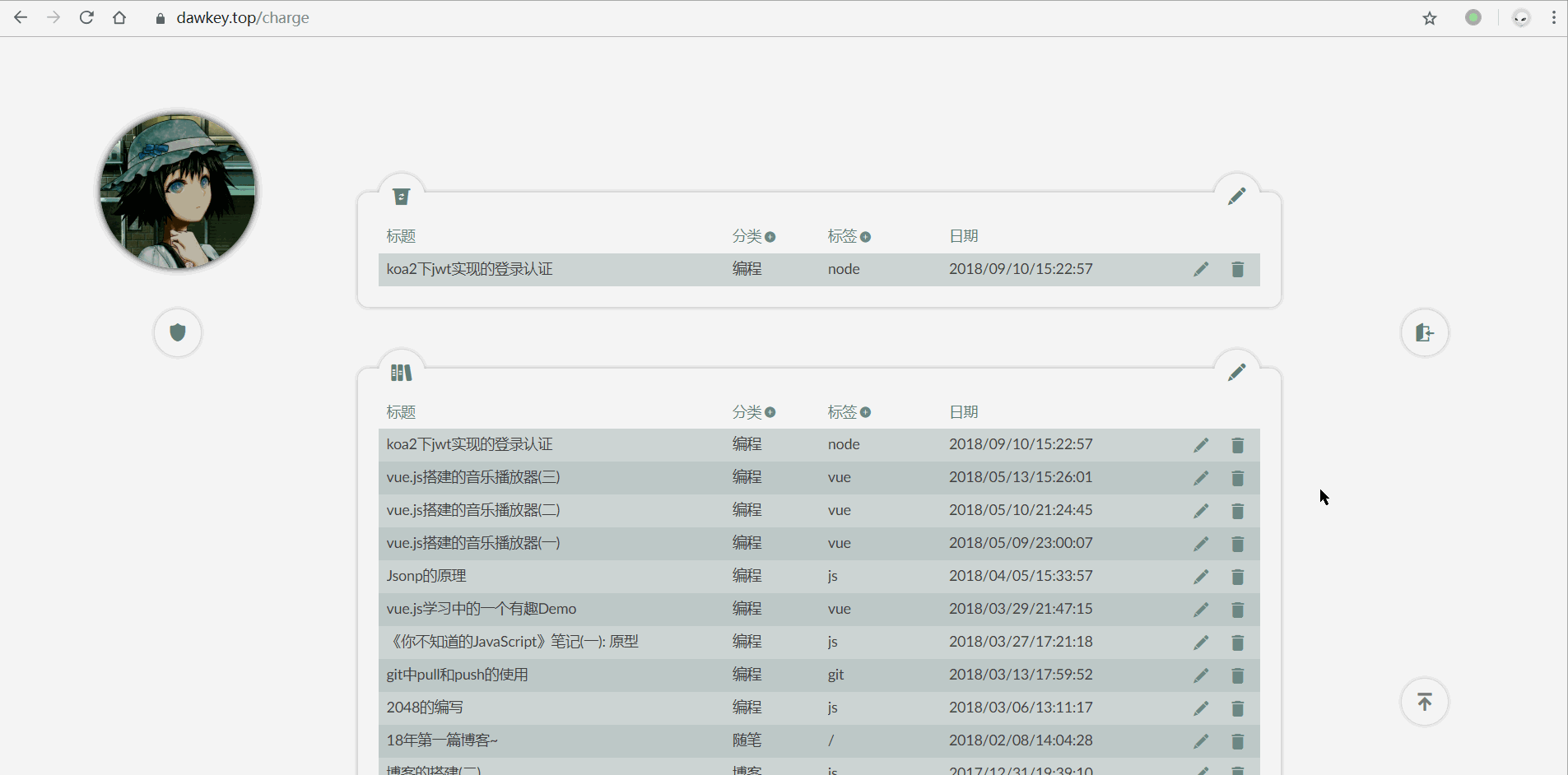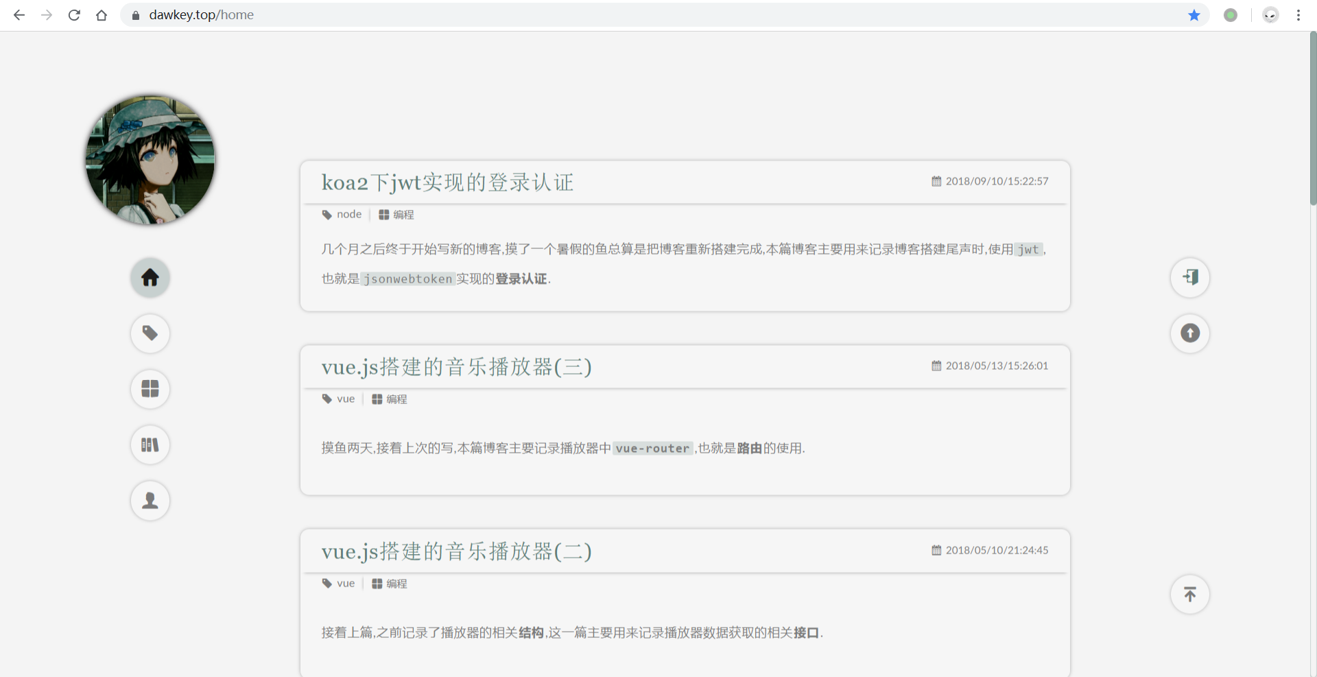 在接触vue之后,就一直想用vue把原来老旧的博客(基于jquery和php)重新搭一遍,在摸了几个月后,总算摸出来了😂.前端部分只涉及到vue,关于koa2和mongodb请移步到后端部分.