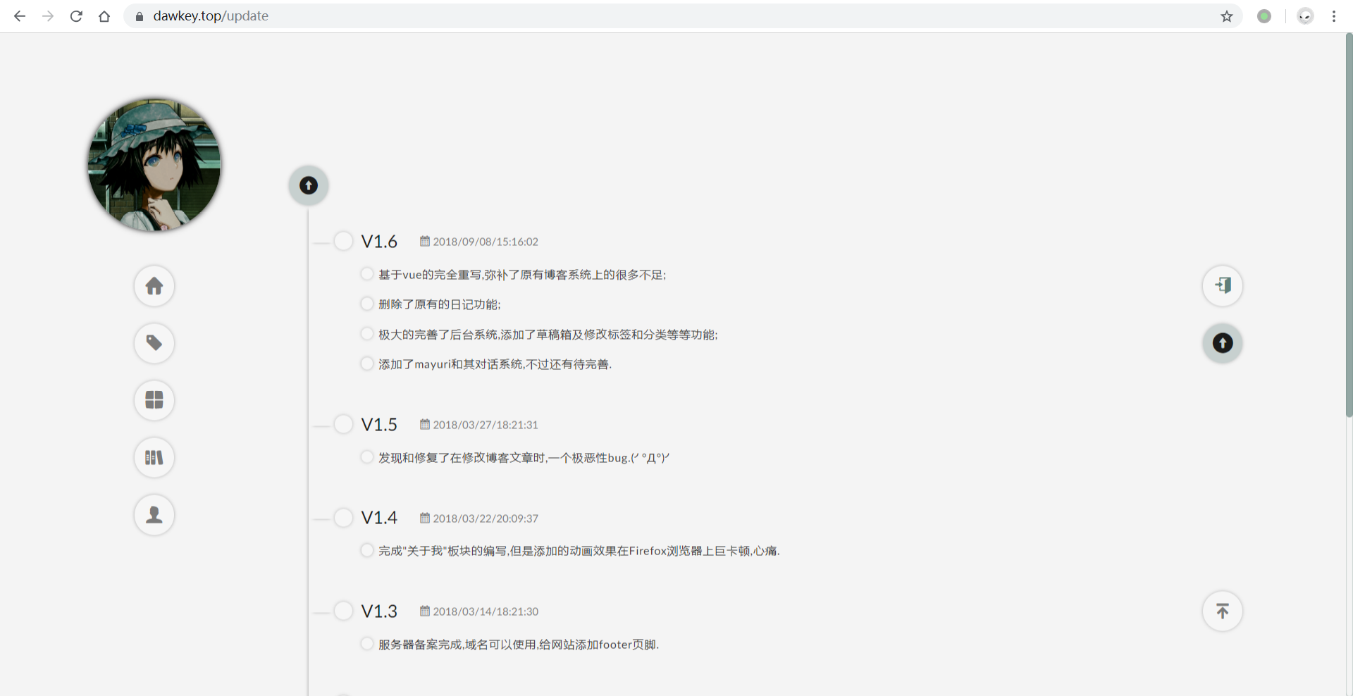 Mayuri指的就是博客左上角的那个动漫头像,在最开始搭建博客时,我就已经想好要做这个了,当时还准备做几个表情,截了相关的图,不过因为暑假摸了太久,导致目前博客上线时,还只有这个初始的表情.