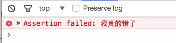 断言语句,这个c++调试里面也经常用到。js中,当第一个表达式或参数为true时候什么也不发生,为false时终止程序并报错。