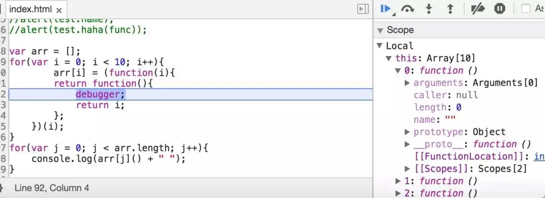 这个重量级的是博主最常用的,可能是c++出身,对于单步调试由衷的热爱。单步调试就是点一下,执行一句程序,并且可以查看当前作用域可见的所有变量和值。而debugger就是告诉程序在那里停下来进行单步调试,俗称断点。