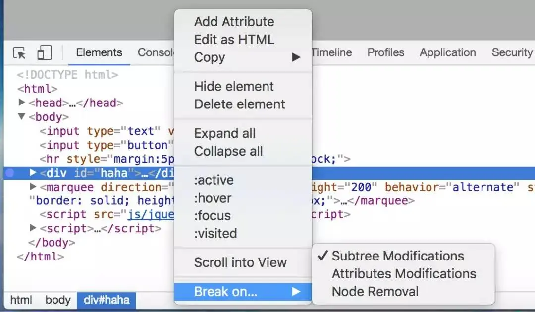 当节点内部子节点变化时断点(Break on subtree modifications)