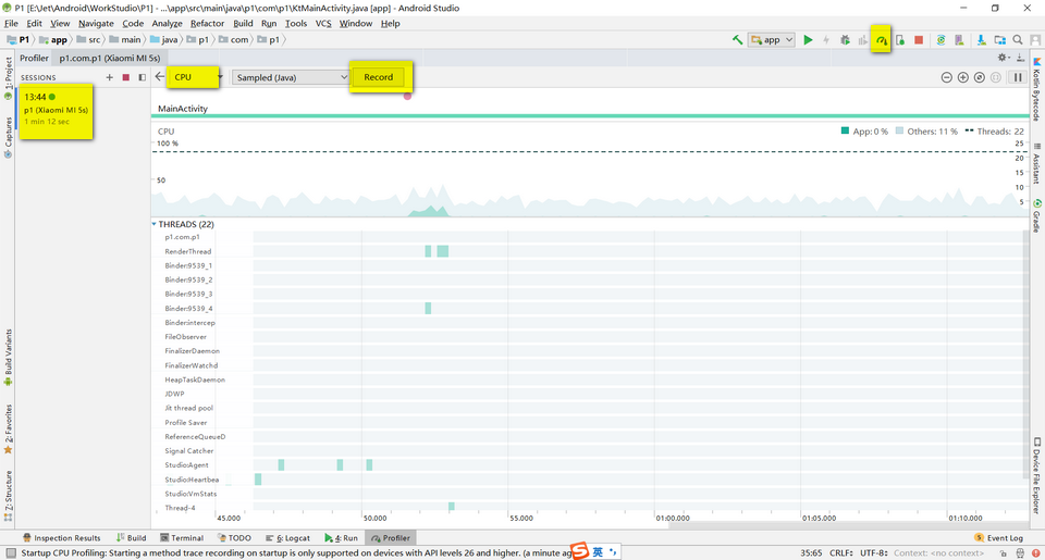 2.其中Android Profiler如何使用,直接看官网即可.Profile your app performance.