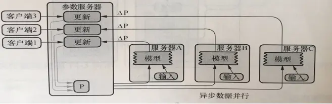 - 参数服务器(parameter server 可以有多台),更新参数,保存参数。