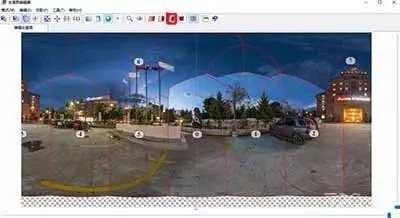 第三步:如果所拍摄照片张数没有问题,可得到一张不包含地面的全景照片,在点击显示接缝按钮可看到每张照片拼接的编号
