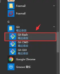 安装完成后在开始菜单下有 git 文件夹 点击下面的 git bash,如图所示: