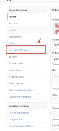 - 左侧菜单列表里选择SSH and GPG keys,如下图所示: