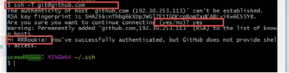 - 现在你可以看到,在自己的目录下,有一个.ssh目录,说明成功了。