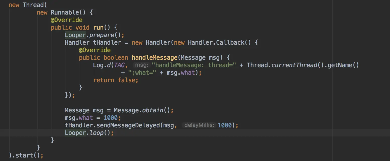 上面一步步分析,都可谓是为了破解“在子线程创建Handler”所引发的这一"血案"。至于怎么解决“子线程创建Handler”报出error,相信通过以上讲解,很容易就大手一挥写出以下代码: