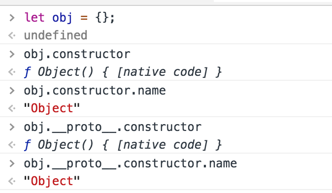 let obj = {}; 因为对象都是由Object这个函数创建, 所以obj.__proto__ === Object.prototype 所以obj.__proto__.constructor 可以转换成 Object.prototype.constructor 而函数的Object.prototype.constructor 指向的就是它自己 obj.constructor 继承它的原型中的constructor,所以指向的就是Object这个函数假如将函数通过new调用: