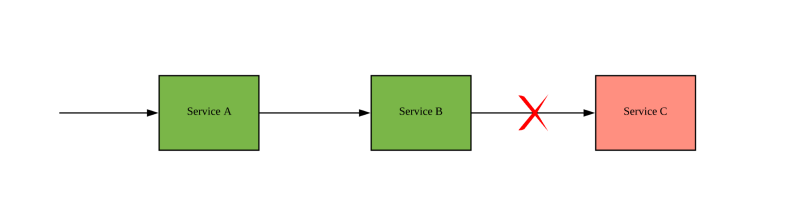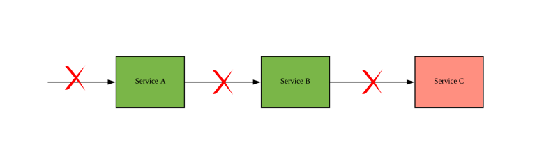 通过使用hystrix熔断器,我们可以在上游服务中增加降级行为。例如,服务B可以访问副本服务或缓存,而不是调用服务C。引入这种方法需要整合测试,因为我们可能无法在好的链路上模拟这种方式。