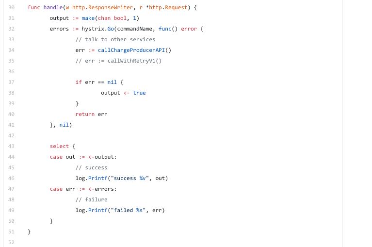 这个样例代码使用hystrix-go库,这是golang的hystrix Netflix库实现。