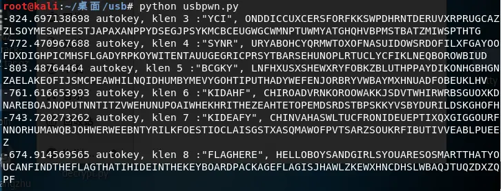 tshark -r task_AutoKey.pcapng -T fields -e usb.capdata //如果想导入usbdata.txt文件中,后面加上参数:>usbdata.txt我们用上面的python脚本将第三个字节取出来,对应对照表得到解码: