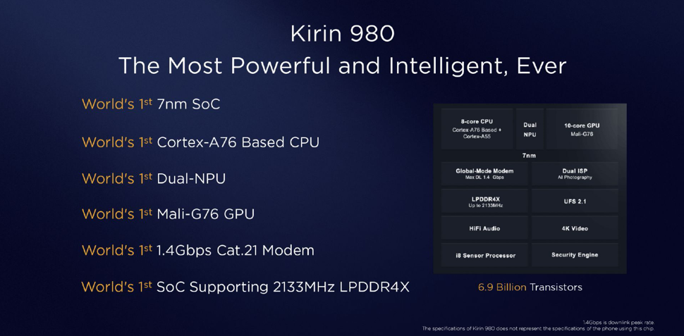 我们再来回顾一下麒麟980的强大硬核: