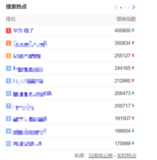 同时华为登上百度搜索热榜: