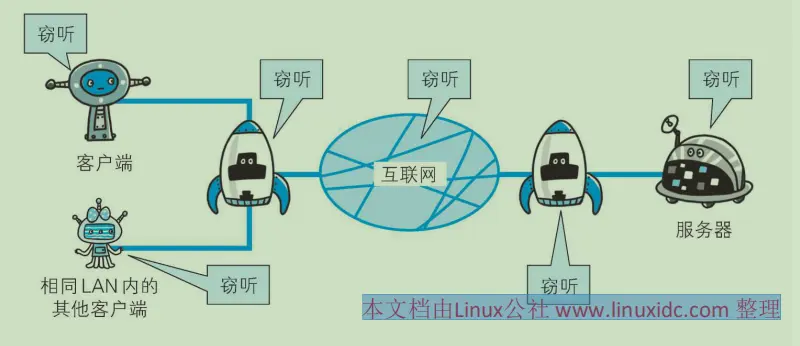 - TCP/IP是可能被窃听的网络