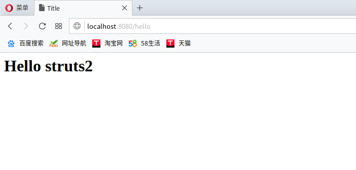运行项目之后在浏览器输入http://127.0.0.1:8080/hello,可以看到以下结果,这就是我们最简单的struts示例